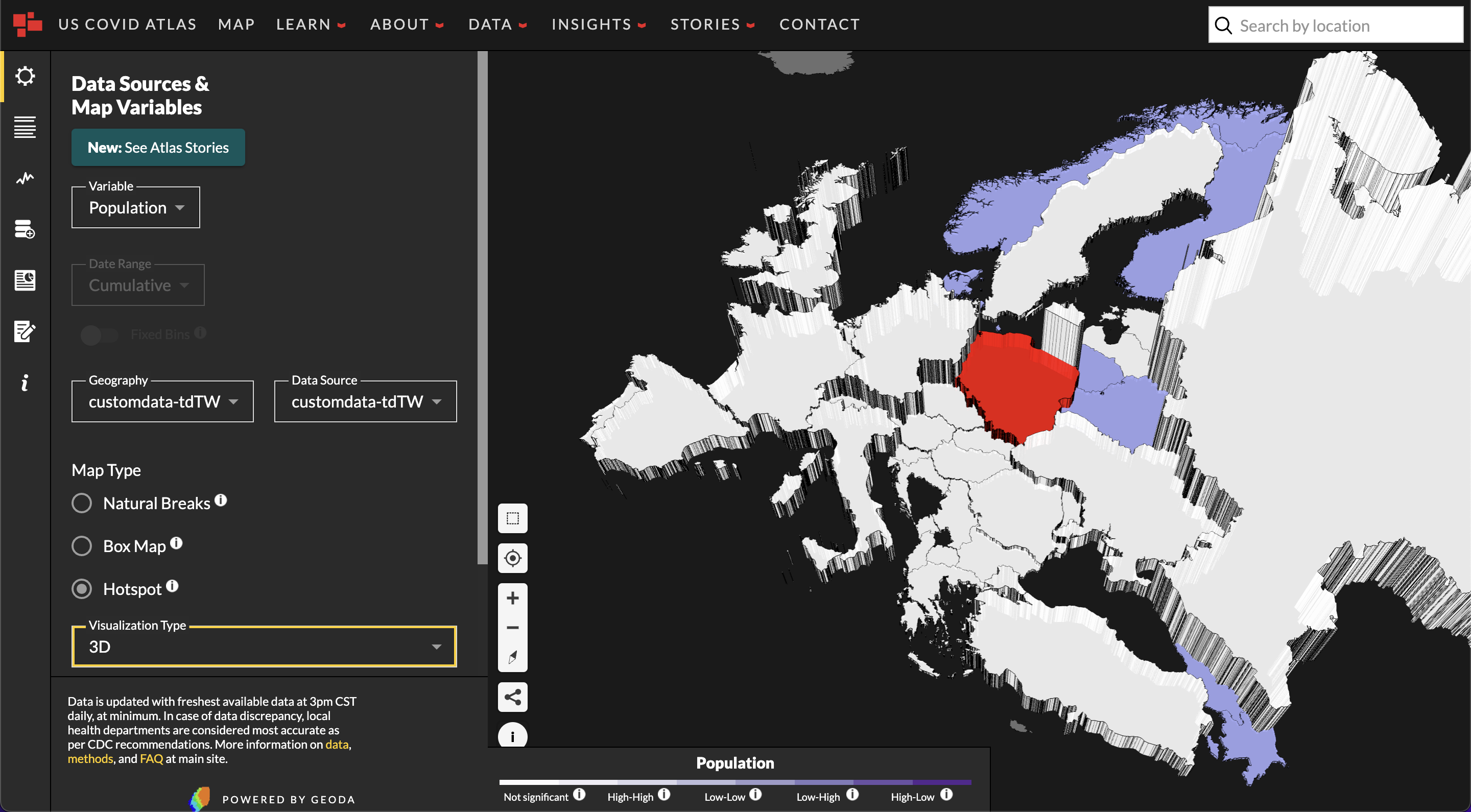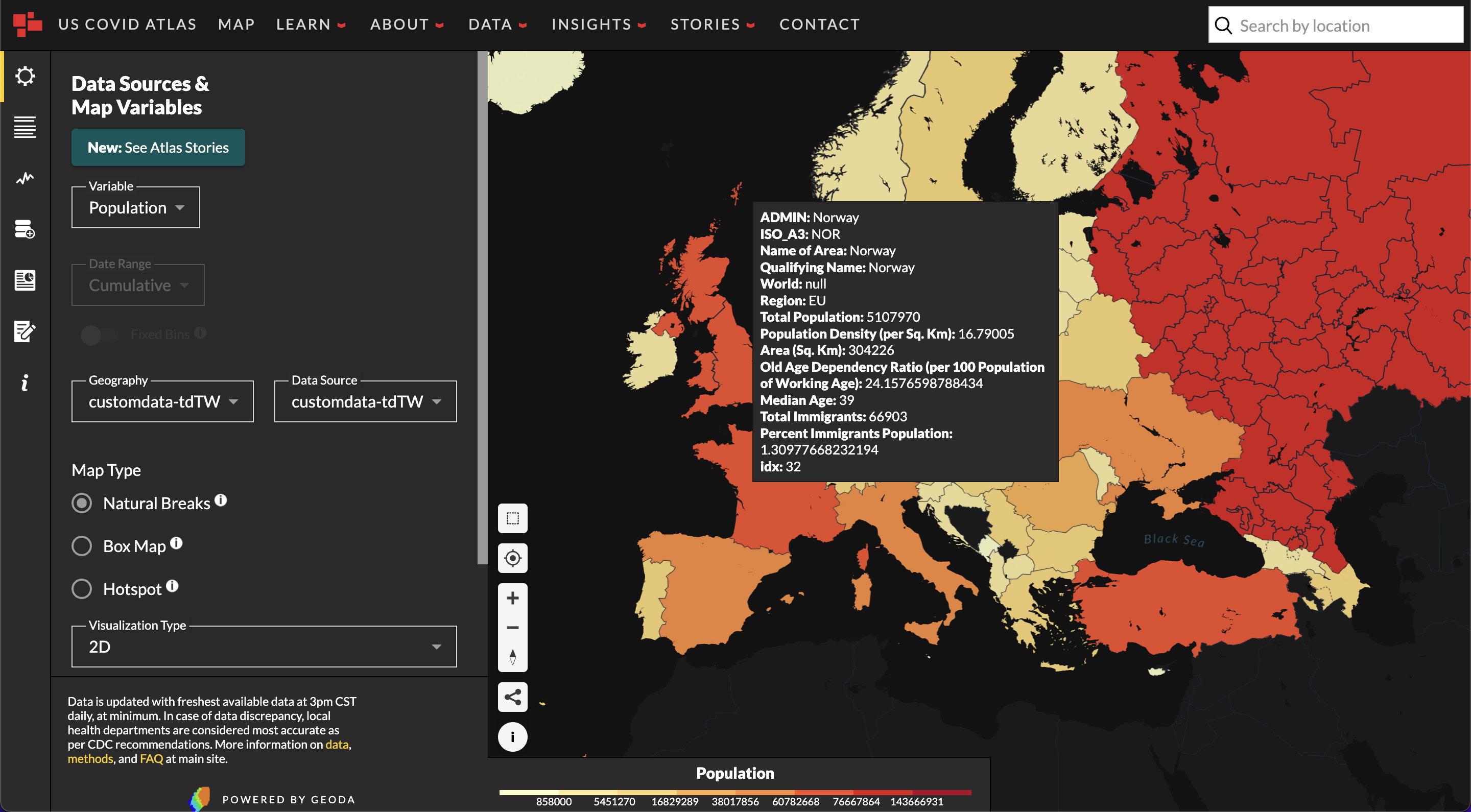 Feel free to even switch back and forth between your custom data and US Covid Atlas preloaded data like county-level case rates, vaccinations, hospitalizations, and use existing tools in the Atlas to get a better understanding of the loaded data.