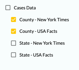(i.e. Cases Data - County - New York Times and Cases Data - County - USA Facts).