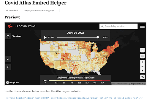 Copy and paste the iframe element located below the Atlas preview to embed the Atlas on your website.